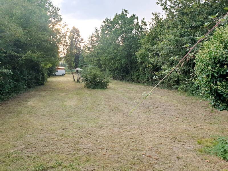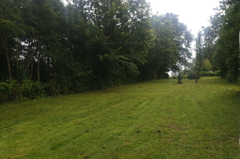 Het perceel is eigenlijk een oude wijngaard echter daar was niet veel meer van over, bij de eerste bezichtiging stond het vol bramenstruiken. Maar er staan er nog genoeg om heerlijke bramentaart van te maken. De bramenstruiken in het grasveld die zijn inmiddels met de zeis verwijderd. Ja je leest het goed, het oude handwerk. Maar het resultaat mag er zijn.